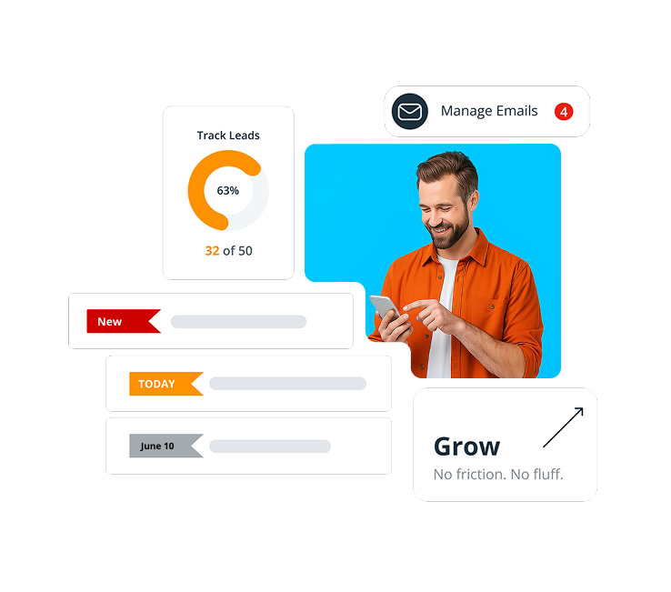 Capture leads from forms, calls, and open houses. Pipeline stages tailored to listing, showing, and closing.